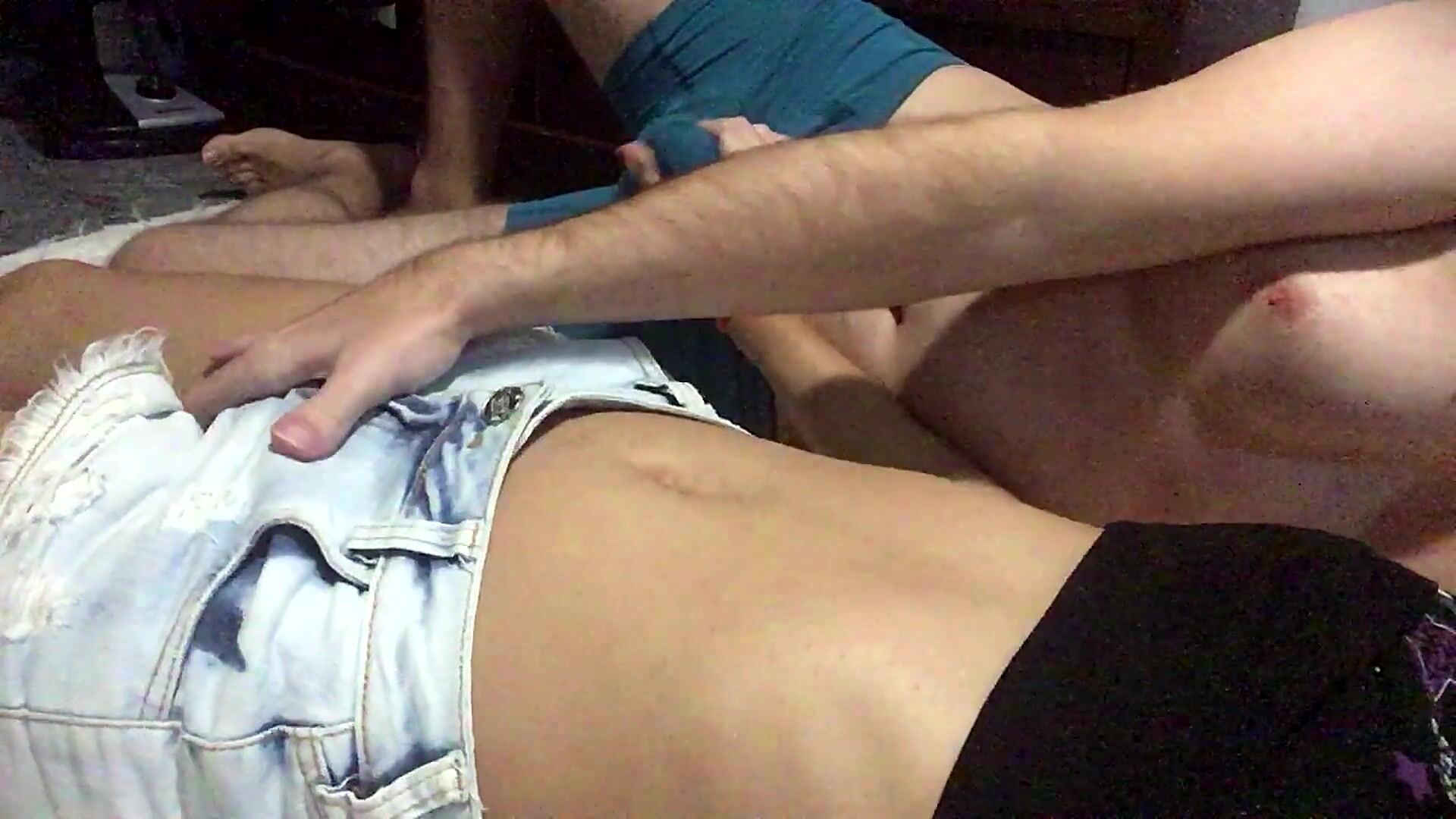 Dry Humping in jeans shorts and Handjob cum in pants Clothed Sex Romantic Couple