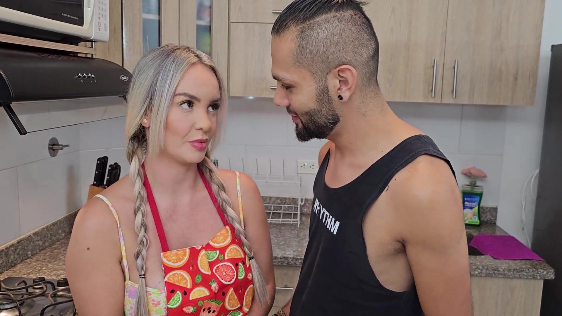 My boss's son seduces me and his father surprises us fucking in the kitchen Kourtney Love